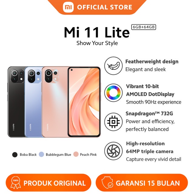 Xiaomi Mi 11 Lite (6GB+64GB) Qualcomm® Snapdragon™ 732G 64MP AI Kamera Layar 6,55” AMOLED FHD+ 4250m
