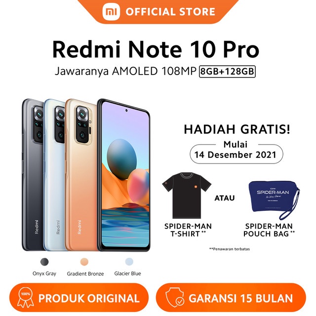 Xiaomi Redmi Note 10 Pro (8GB+128GB) AMOLED 6.67" 108MP Quad Kamera Snapdragon 732G Baterai 5020mAh