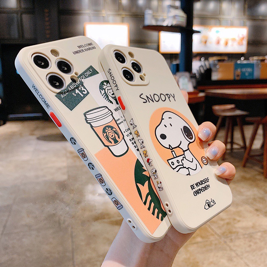 Snoopy Starbucks Casing Vivo Y20 Y50 Y30 Y17 Y15 Y11 Y12 Y95 Y93 Y91 Y30i Y20i Y20S Y12S V20 SE Pro Y51 Y31 S1 Y91i Y91C Y12i Y19 Y1S V9 Y85 Y97 V11i Y71 Y71i Y81 V5S Y67 Y66 Y65 V5 Lite Case Cute Starbuck Coffee Label Liquid Silicone Back Phone Cover