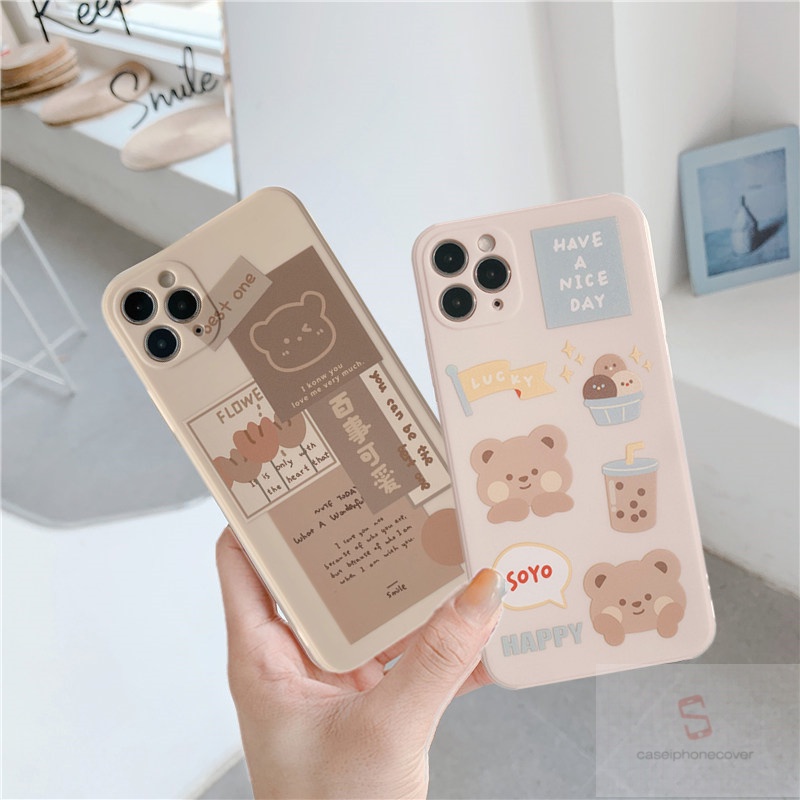 Cute Bear Soft Case Oppo Reno 6 A16 A5s A12 A54 A74 A35 A53 2020 A94 A33 2020 A31 2020 A32 A3s A7 A11 A5 A9 2020 A74 A12e Reno 5 4 Oppo A92 A52 A72 Reno4F Reno 4 Lite A93 F17Pro Smiley Protective Cover