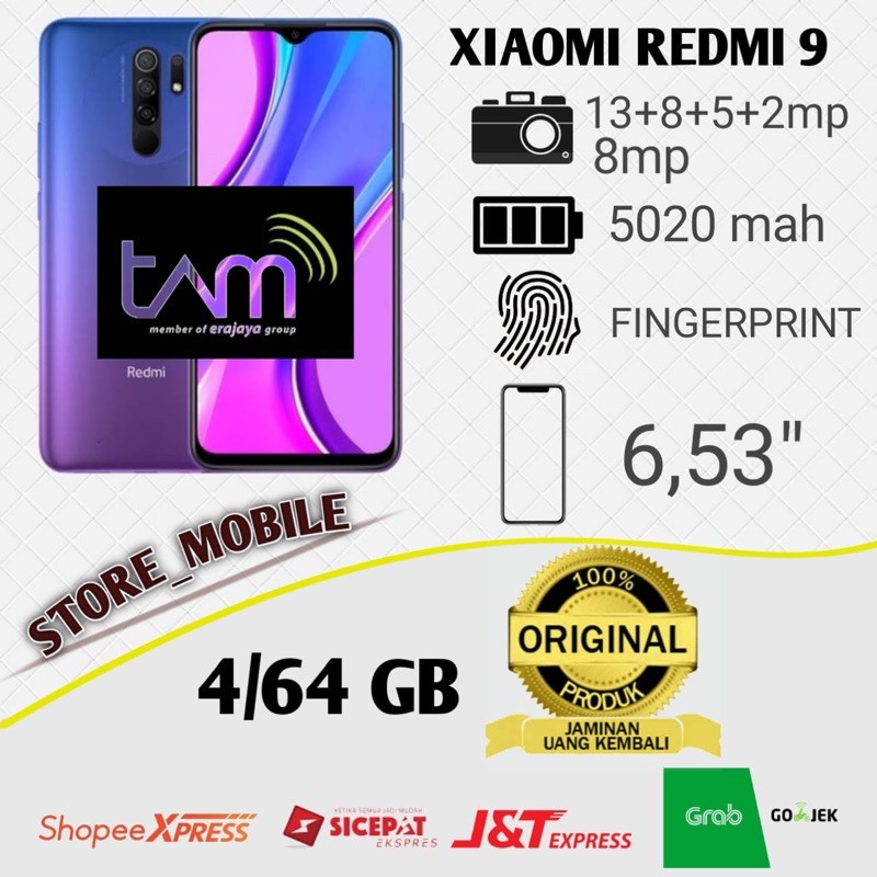 XIAOMI REDMI 9 4/64 RAM 4GB ROM 64GB & RAM 3/32 GARANSI RESMI