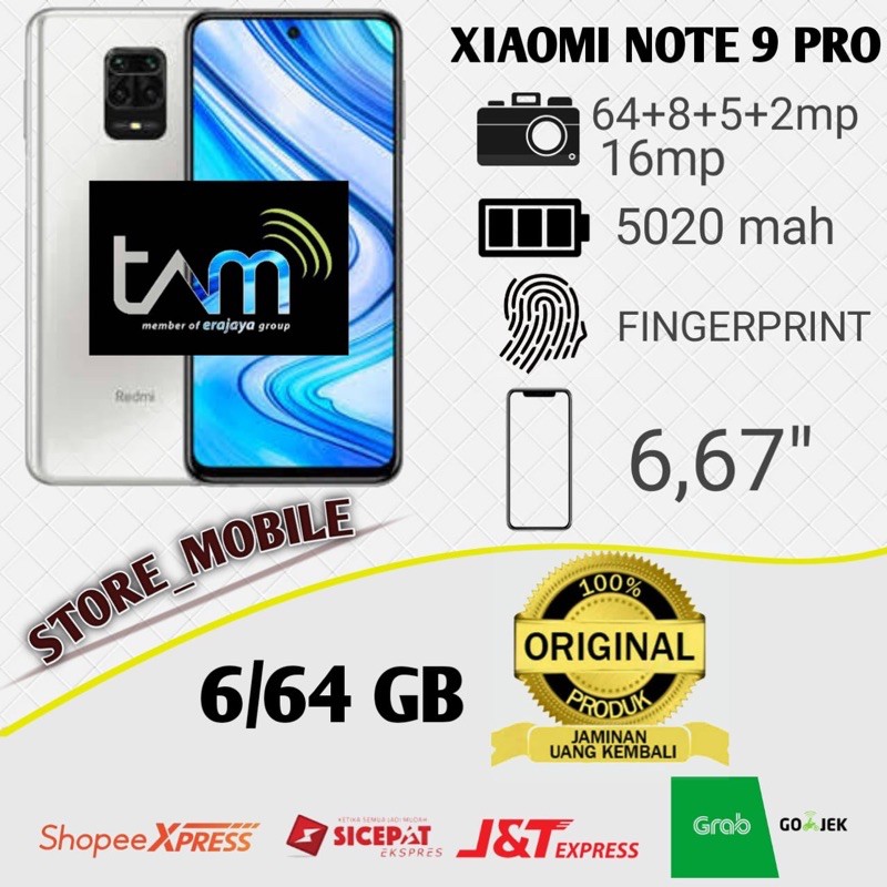 XIAOMI REDMI NOTE 9 PRO 6/64 RAM 6GB ROM 64GB GARANSI RESMI TAM