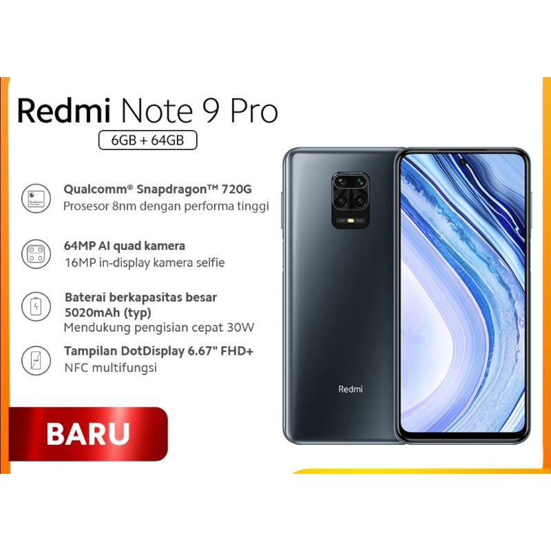 REDMI NOTE 9 PRO 6/64 GB GARANSI RESMI